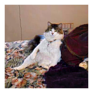 There’s a cat on the porch that I feed twice a day. Ten years ago, or so, he was found feral in my yard, un-neutered and injured. I trapped him and had him “fixed” all around, but he needed meds, so I put him downstairs. Alfred hid very well for two years, but I still fed him and cleaned his box. Finally, I trapped him and put him back outside. I didn’t think I’d ever see him again, but now I see him all the time. He lets me pull off ticks and rub his head. Trust… takes time, effort, and tuna.—Joseph A. Dewan